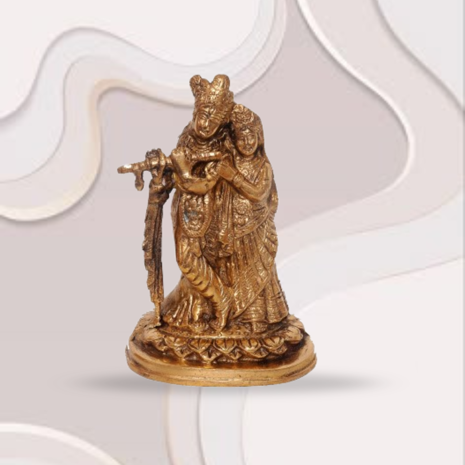 Sacred, graceful, and beautifully detailed — our Radha Krishna Brass Idol (5”) symbolizes eternal love, devotion, and harmony. Handcrafted in pure brass, the idol radiates positivity and divine charm, making it a perfect addition to your puja space or home décor.